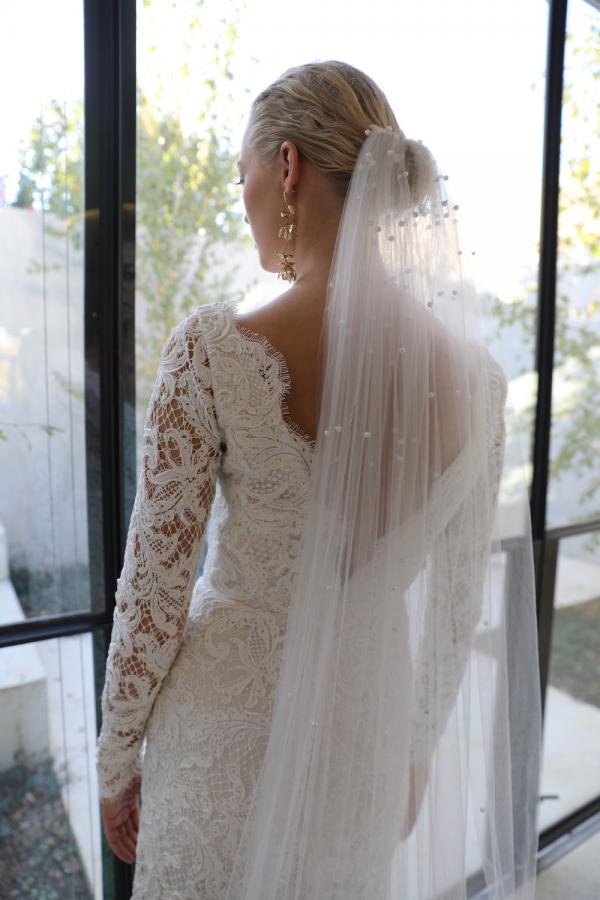 Handcrafted in our South Melbourne showroom from bridal illusion tulle and finished with hand embellished with pearls.