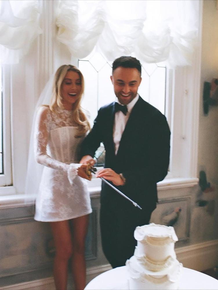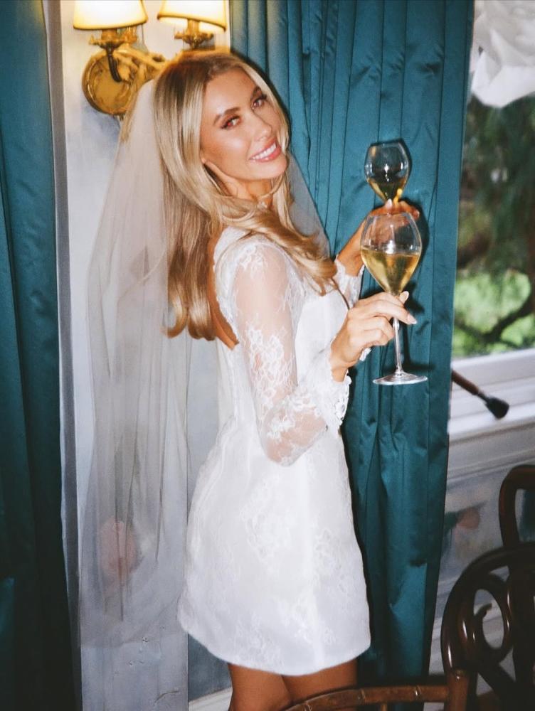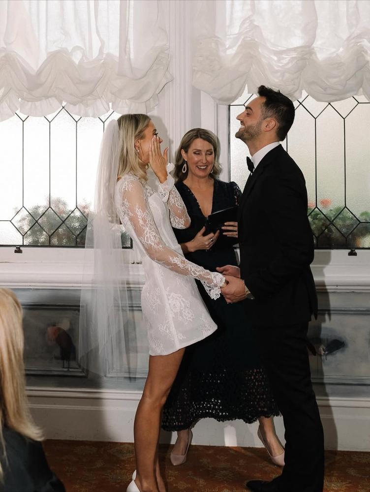 Ash wears a custom Mariana Hardwick Mini Dress for her surprise intimate ceremony.⁠
