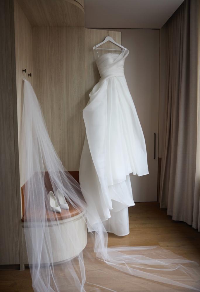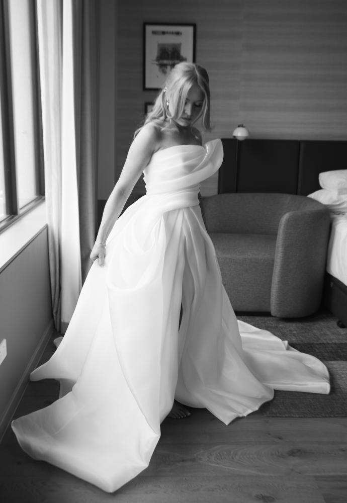 Chelsea wears the Issy gown for her wedding.