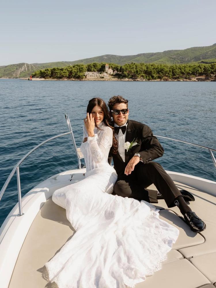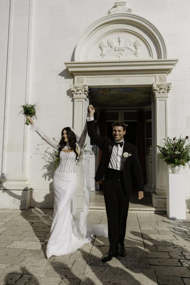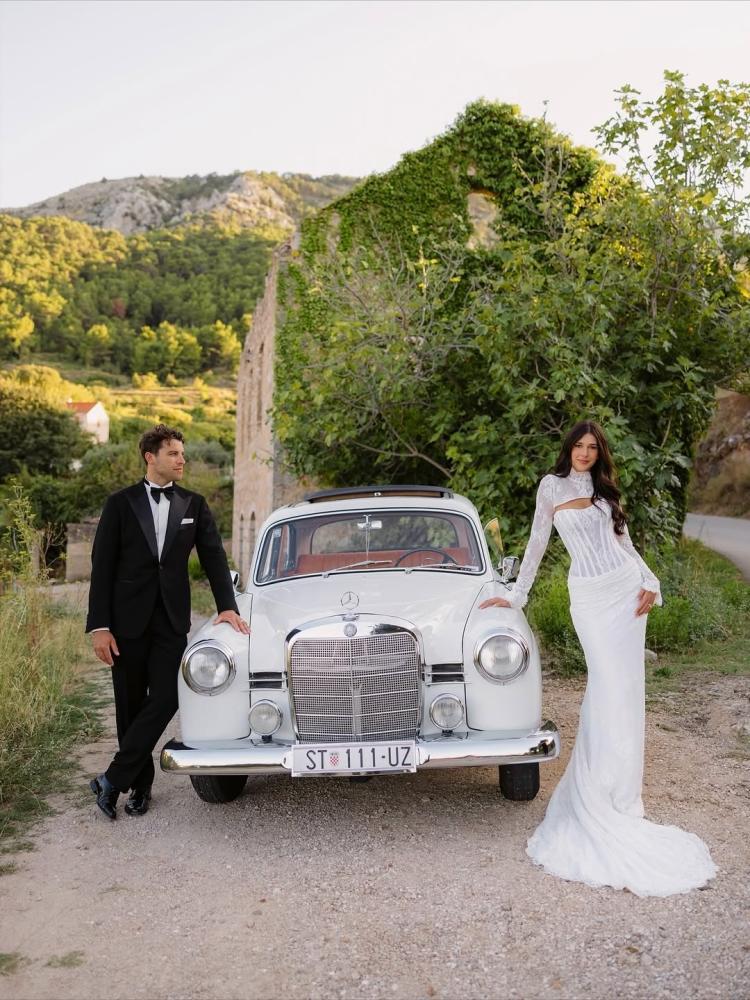Mandi wore a custom Alia gown with the Alia bolero for her Croatian wedding, held in a village close to their hearts and honouring her family heritage.